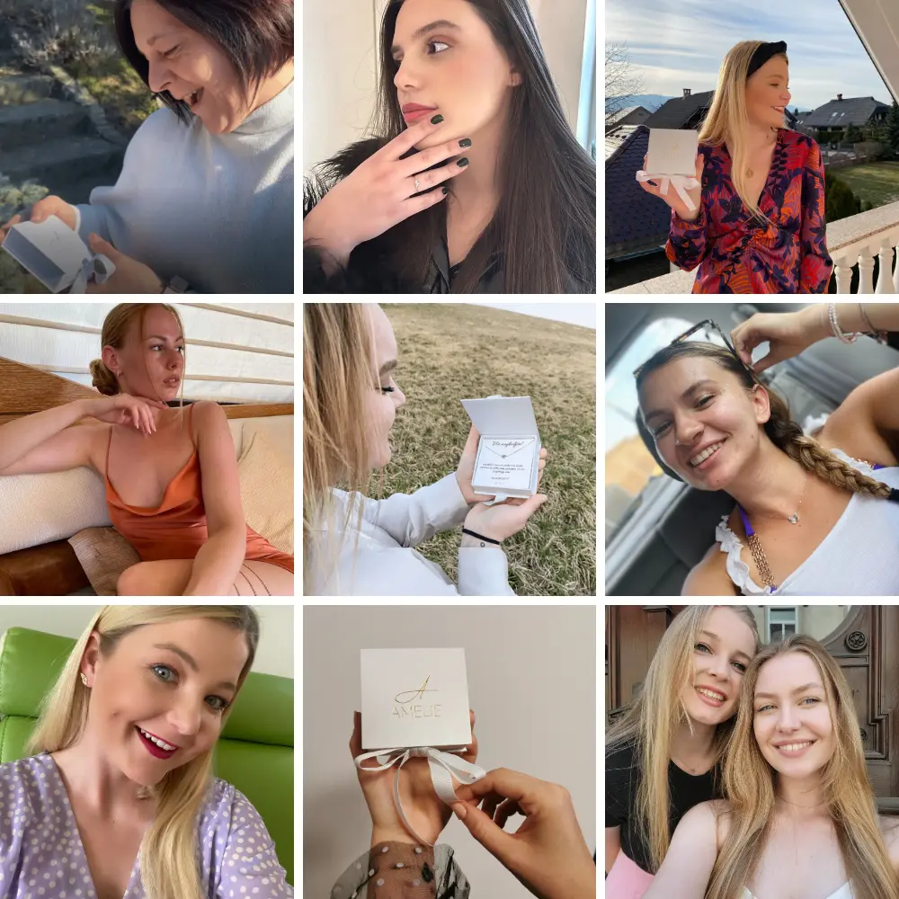 Pri Amelie najdeš samo kvaliteten nakit iz srebra ali nerjavečega jekla, ki je odporen na vodo in praske ter ne porjavi ali pozeleni v stiku s kožo.